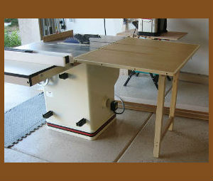 “Outfeed Table for Full-Sized Cabinet Table Saw” Provides safe platform for catching cutoffs from the table saw. In order to get the most out of your table saw by the