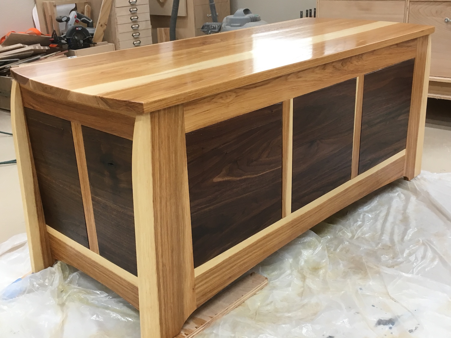 Hickory with Walnut Panels I just completed a new blanket chest based on a design I found in the January/February 2009 edition of “Fine Woodworking.” I made every effort to