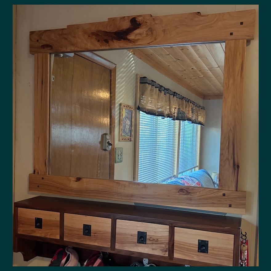 “Greene & Greene Style Hickory Mirror” with Walnut Plugs I’ve always loved Greene and Greene style furniture, but it hasn’t fit in the decor of the cabin too well. I finally found