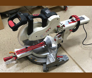 12″ Sliding Compound Miter Saw. I finally got a new miter saw. I purchased it with money I earned from my recent box shelves build. This will be a perfect