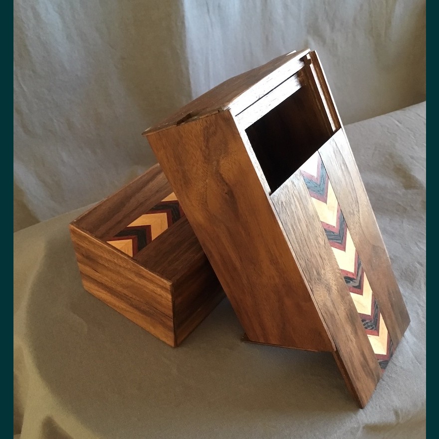 About 10 days ago, I started building two boxes. One is cherry with a maple and purple heart inlay, and